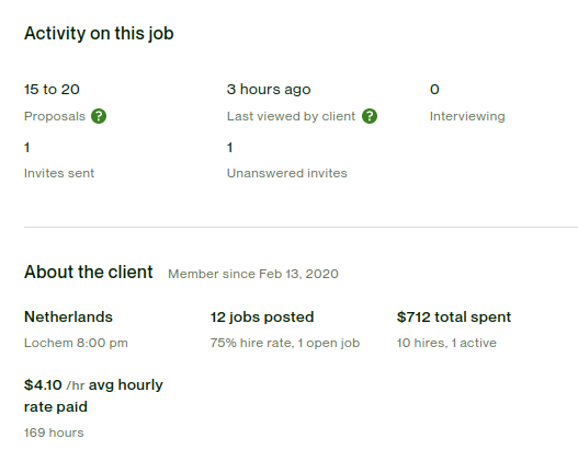 Скроллим заказы. Открываем понравившиеся, смотрим историю найма. Если он до этого нанимал людей на ставку $8/час, куча маленьких заказов, типа $15, $30 - скипаем этот заказ, клиент долбоёб, ищет подешевле.