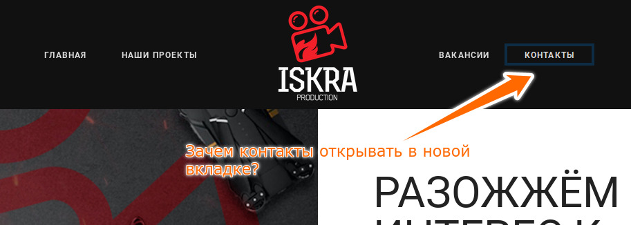 >Ну и последнее, зачем контакты открывать в новой вкладке? Я когда кликнул по ссылке, подумал что меня перекинуло на другой сайт, потом сравнил URL, оказалось тот же. Короче это путает.