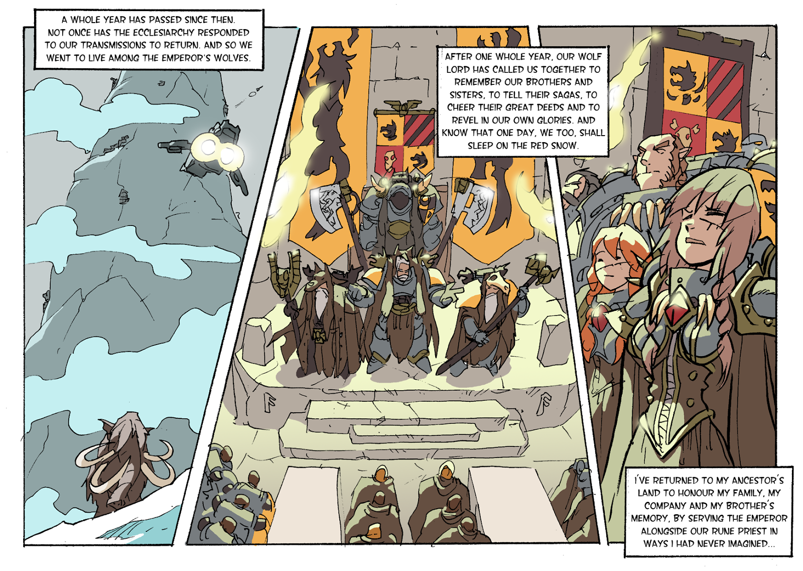 Так вот, возник вопрос под впечатлением от концовки, согласно которой у КосмоВолков «теперь» есть собственные сёстры битвы или Валькирии, а также союзные скваты со своими технологиями — «насколько лорно и канонично было бы создание своего рода Вольчьей Империи после Ереси или 13-го ЧКП или при каком-нибудь другом кризисе?».