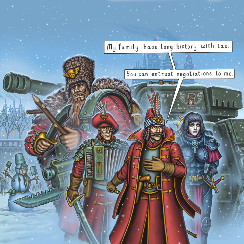 > Да, конечно, ему же нечем заняться во время войны против всех и кризиса. Наверное, раз уж он взялся превращать легионы в ордена ещё в процессе подавления Ереси, а спустя 10 килолет реформировать адептус терра в разгар Неодолимого крестового похода... Вообще, есть мысль, что нотингемцы слегка поторопились и лучше бы Жиля начал восстанавливать единство Империума постепенно и не спеша, начиная с Ультрамара. (Эдакая АИ-отсылка на Государство Сиагрия, но успешное и таки отреставрировавшее Западный Рим).