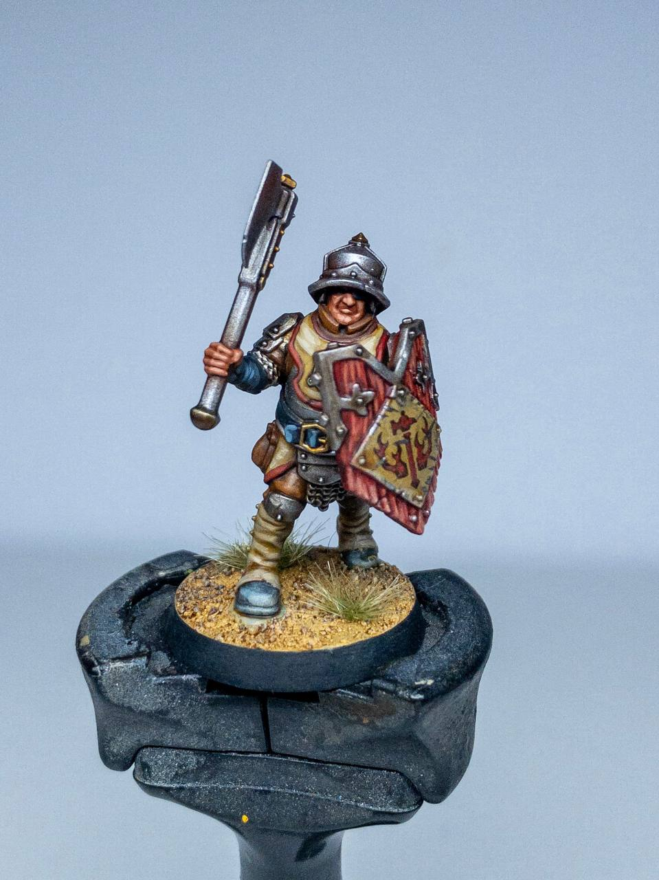 Кистью из баночек валеховские лаки наносятся лучше, не так сильно меняют металл, но не хочется всю миниатюру от руки лакировать. Плюс лаки нанесенные кистью хуже держатся и не столь надежно защищают покрас.