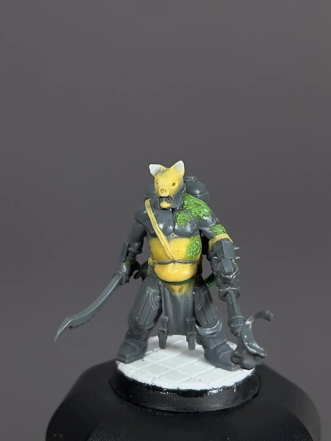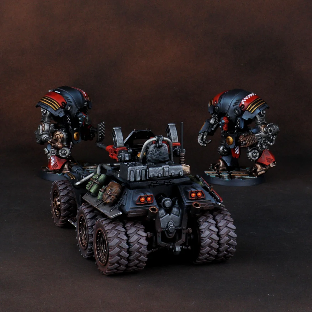 Ну и к тому же еретех еретеху рознь. На охаосевшего еретеха он не похож - слишком чистенький. Чёрно-красные цвета напоминают цвета Стигии-8, которая кишит еретехами-ксенаритами. Которые как раз лояльные, просто с ксенотехом играть любят. Или может он кто-то типа мойрианца: поклоняюсь Омниссии, который Император, но поклоняюсь неправильно, за это и выгнали.