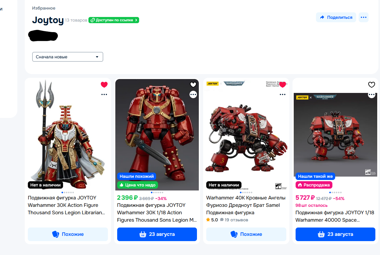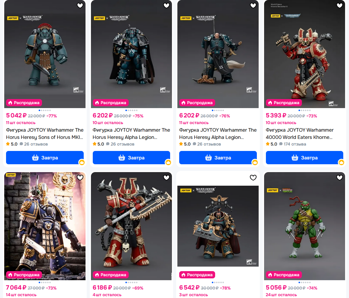 У меня за ночь из корзины на озоне 90% фигурок исчезло, остались только интерцепторы от ноунеймов и лоты с московских складов по х2-х3 цене... это страшно ребята...