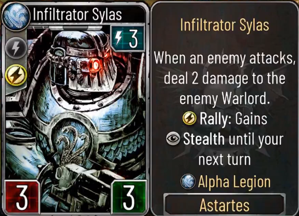 >>123268 Потому и добор стоит 2, что он примарх. Хуисосы в ЕГ думают, что 40 хп - это настолько невъебенный бонус, что давать командиру адекватную абилку и не надо. А у Левы мало того, что Расплата трудная, так еще и говно, потому что он на ней чисто проебывает ход, получая +1/0 - и после этого ему нужен стол для её прокаста, чтоб баф дать, который к тому моменту или снесут, или который и без расплаты зарешает. Лева должен быть такой: абилка за 2 маны - выберите крыло и возьмите из колоды астартес этого крыла, если нет в колоде - создайте. Расплата стоит 18 и удешевляется на 3. В Расплате Лев получает +1/0 и способность за 2 - "Обновите Квесты ваших солдат (в смысле - выполненные квесты зарядите заново) и дайте +1/1 всем солдатам с чертой Квест").
