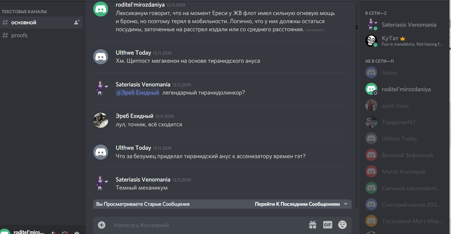>>4237 Зачем здесь эти скрины. Зачем. Если тебя не устраивает то, что он пишет, сообщи куда следует и адекватно объясни проблему. Перемывая здесь кости ему и кому угодно, ты делаешь раздел именно тем, чем его пытаются показать - помойкой, которая не заслуживает права на жизнь и должна быть снесена. Когда сообщество начинает обсуждать самое себя больше, чем тему ради которой создавалось, ему конец. Оно прогнило насквозь. Неважно, на что одни сегодня пытались переключить тему - на Вандира, эльдар, орков, кого угодно, все перекрывалось "шизики, Хренд, шизики, d, модерация, шизики, Хренд, шизики, форсеры, шизики, шизики, шизики". Со скриншотами, перепостами и цитатами перемывания костей друг другу. Зачем? Одно дело - ответить кому-то в треде, с кем ведешь разговор, да и то на очевидную толстоту отвечать нет никакого резона. Другое - тащить мусор отовсюду. Глядя на это может показаться, что доля правоты есть в словах тех, кто считает, что тред себя исчерпал.