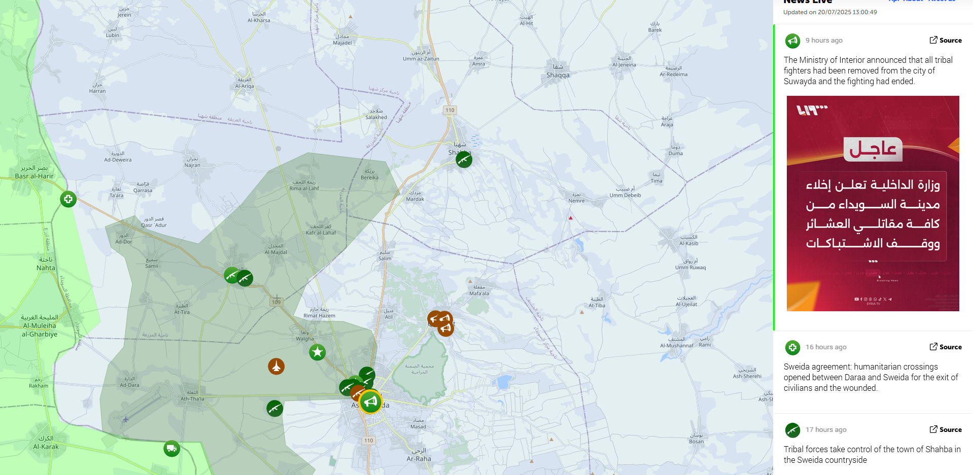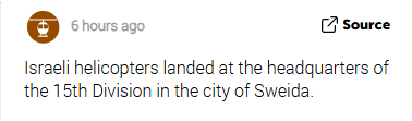 Сырийцы пишут, что Голани подписал тельавивск с увожаемыми партнерами, но друзы надули-обмнули и начали резать сунитов, как только армия сделала жест доброй воли и отошла под бомбежками Израиля. В любом случае, бедуины недовольны и пишут, что готовят новый набег уже не спрашивая мнения Дамаска. Голани, по ходу, проебал все управление страной.