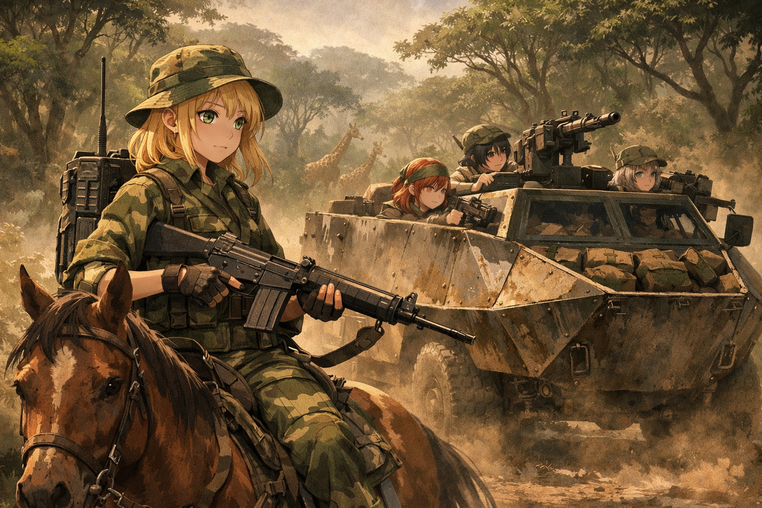 > Пик 4 Kohima, 1944 ЧатГПТ говорит, что у тянки на шляпе эмблема Australian Army Ordnance Corps, но чёт хз. Совсем другая гуглится. Автор: https://www.pixiv.net/en/users/78305394