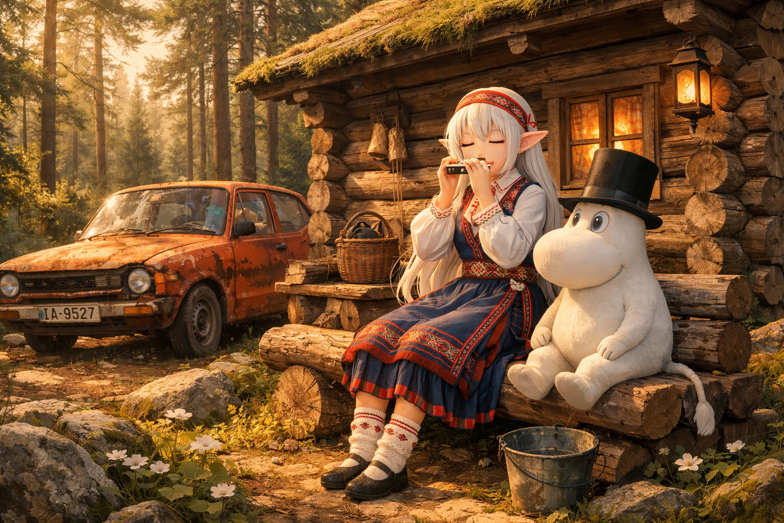 Ещё нейрокала. Вторая пикча нерелейтед, но по изначальной задумке я хотел эльфийку с винтовкой среди снегов, отбивающейся от белых ходоков. Правда, получились слишком нехорошие ассоциации, а потом так — My Summer Car, Муми-тролли, а эльфийка, ибо Толкин язык эльфов на основе финнского создал же.