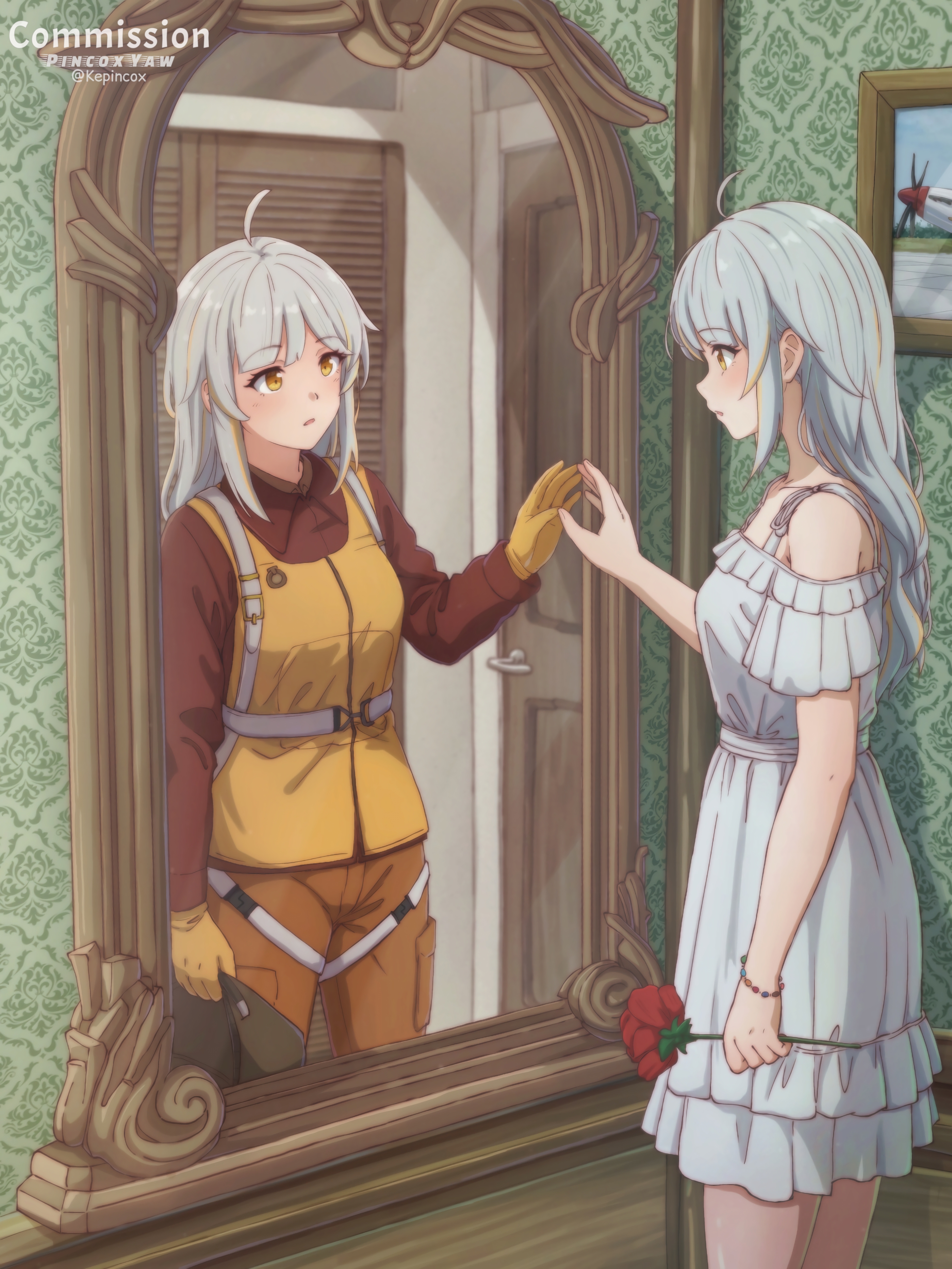 > Пик 4 Девушка в вечернем платье с MP7. Пикча подписана как "Another Webtoon Project", но я чёт такой вебтун не нашёл. Автор: https://www.pixiv.net/en/users/15016890