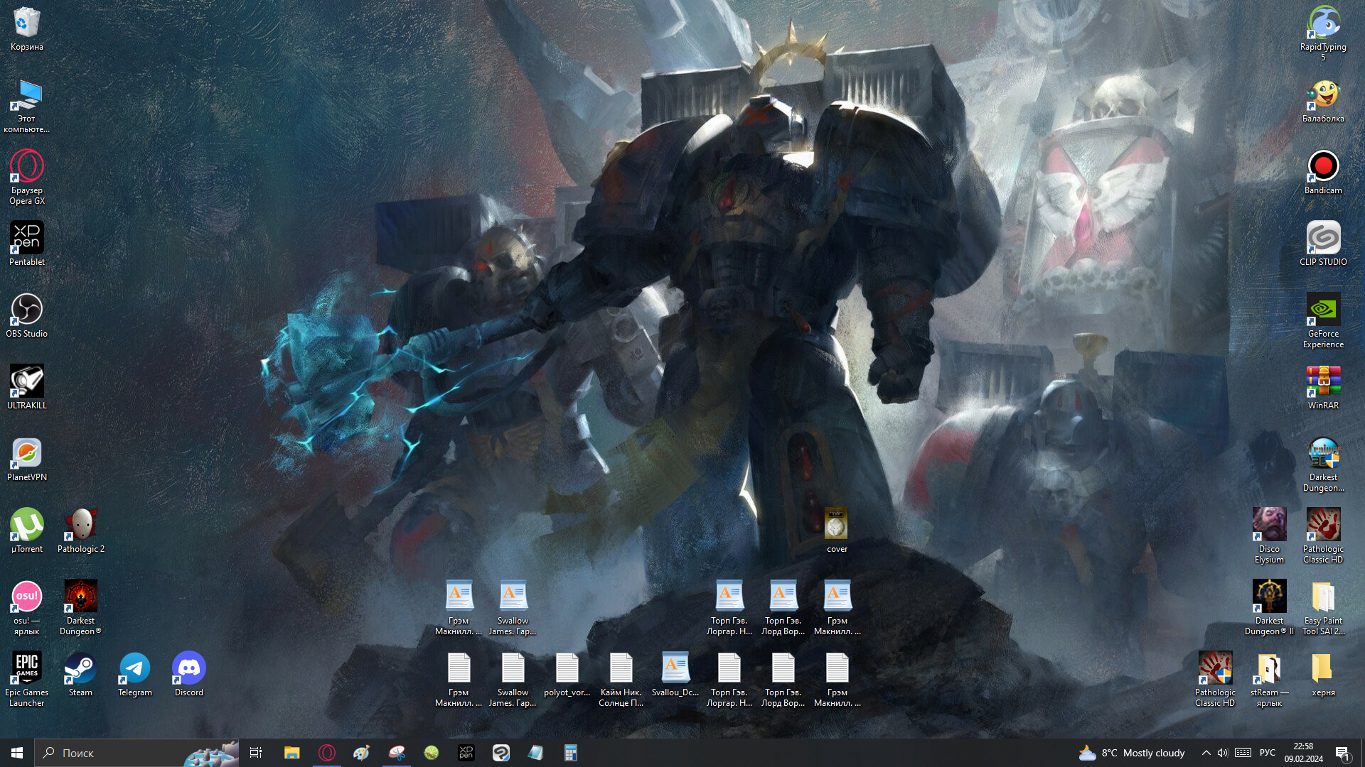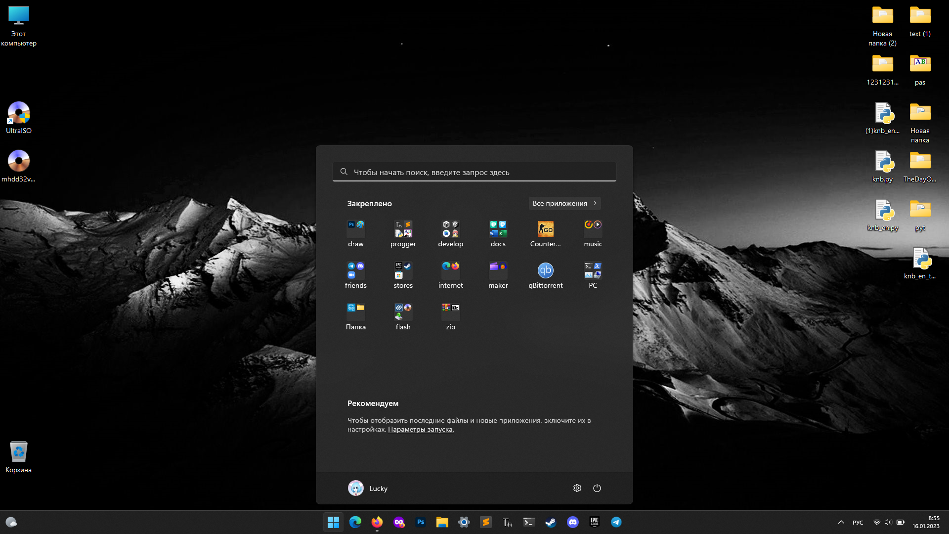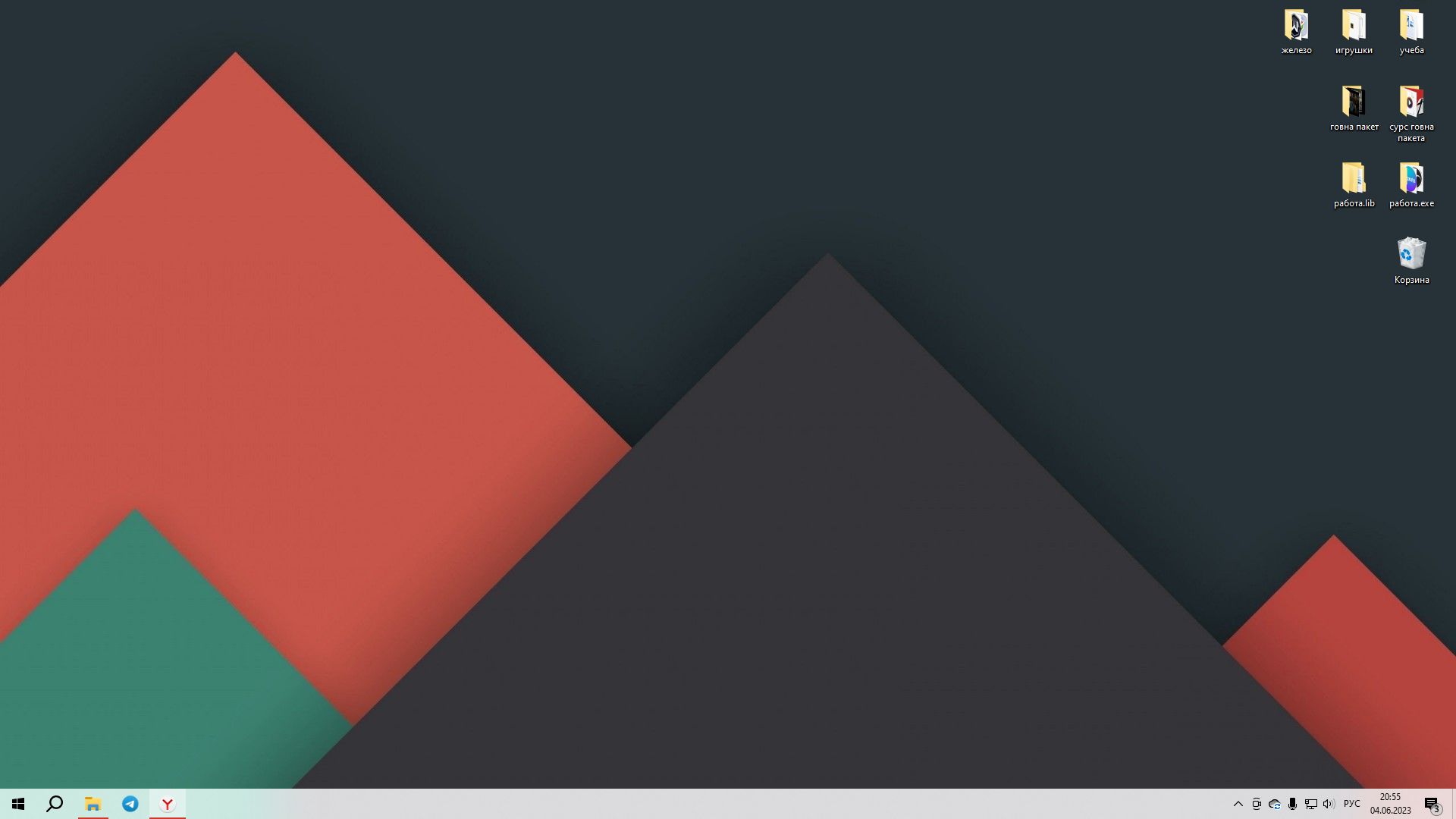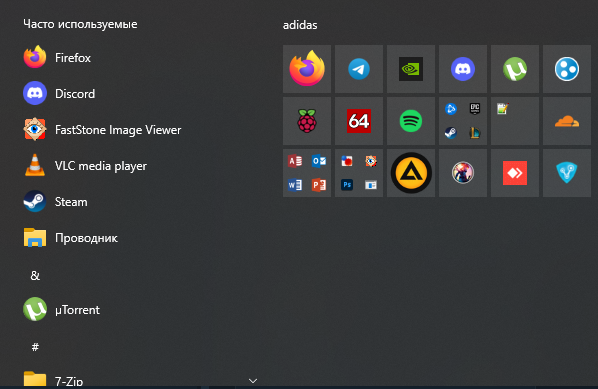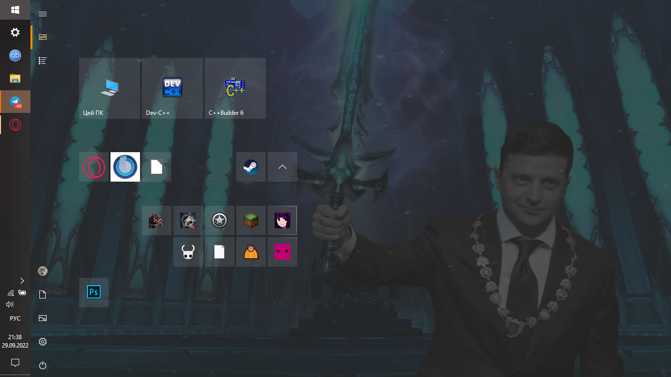 Стараюсь везде располагать ярлыки примерно так. С одной стороны "угол" программ, с другой – игр. Также стараюсь рассортировать по форме. Папки с недавними часто используемыми файлами либо сами файлы где-нибудь между ними или сбоку. Но вообще стараюсь папками не засорять рабочий стол.