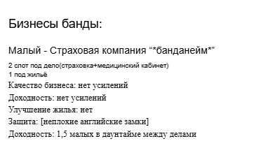 Что касательно вашей банды Мозговитый лепила зайдёт, что нужно. Плюс возможность подлататься не в больничке - довольно неплохой источник информации Мистер щипач + мистер боец-бравлер-стрелок — рабочая связка почти в любом дельце Мистер языкастый — ну а куда без балабола, который будет обкашливать вопросики