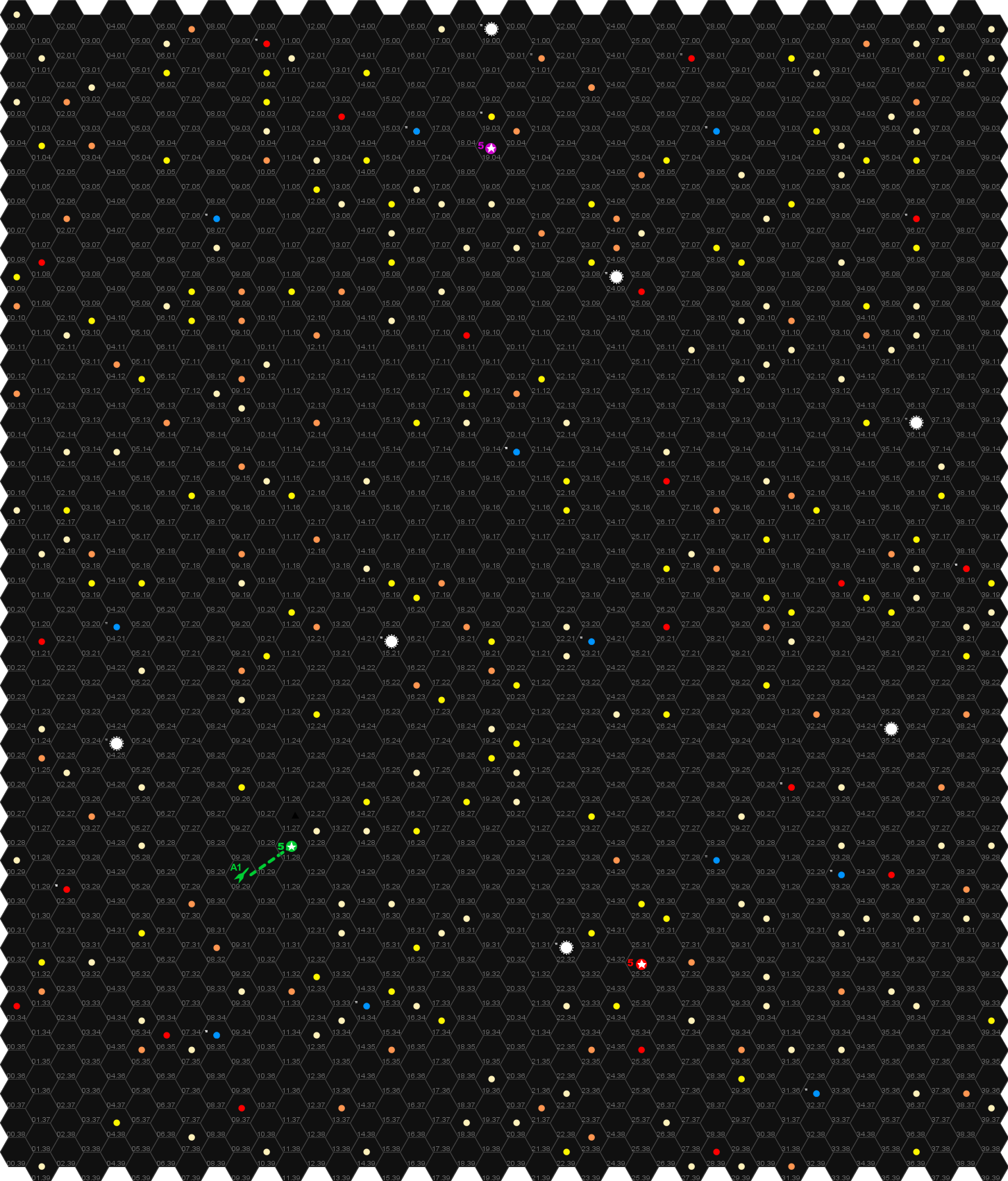 Только система не правильно названа, я ее со своей древней карты писал... Это кстати усложняет механику, поэтому смотри с системами может и не стоит возиться, можно считать единый показатель атаки, брони и защиты флота в гексе, тут я еще могу подумать. Про бои на планетах ты тоже наверное не думал, поэтому планеты рисовать не стоит. Вроде пока все.