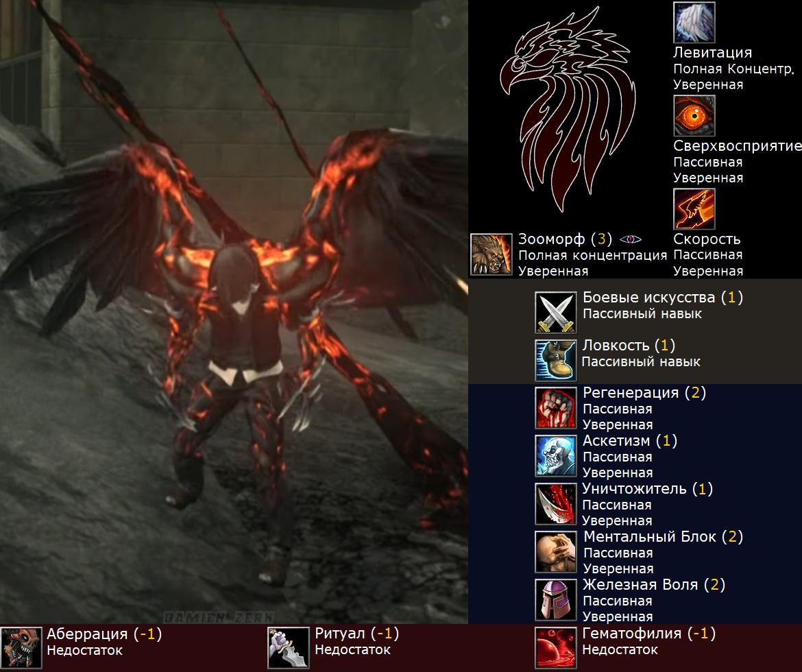 >>712678 Окей, тогда тебе для адекватного вката придётся подождать, пока игроки заказчику диски не сдадут. После будет новое задание (для тех, кто хочет), и там ты будешь в самый раз. Да, и по зооморфу. Думаю, это очевидно, но на всякий случай уточню - если ты не находишься в образе полутонного сила же, обычный волк не сильнее человека волка, то и способностей с первой пикчи нет. Да, и зачем тебе скорость на ястребе, если есть левитация? Левитация и так позволяет передвигаться по четыре клетки за ход, разве нет?