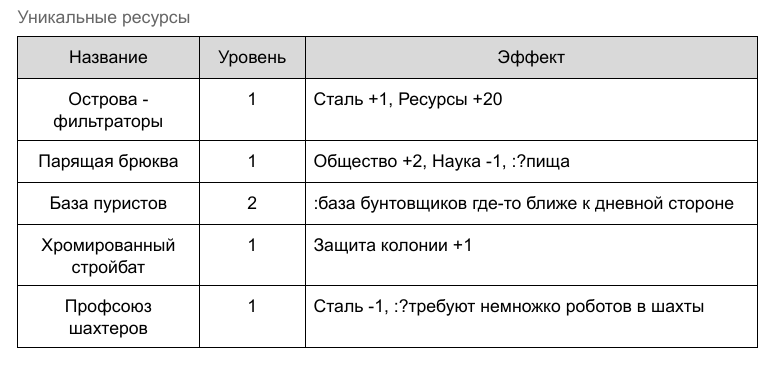 Особые эффекты :+1 очко опыта текущим и будущим великим людям :Атака +3 для своих армий на планете :возможность расширения :доступны искусственные матки :естественная рождаемость :жорик-сеть :земля с запахом аммиака :изучение своей звёздной системы :ищущие воду Жорикусы :кожа колонистов отдает свекольно-красным :легкий наркотик Хреногубки :оценка ресурсов других планет ЗС :разведка планеты :сплавление кубов :уникальные технологии Беглецов :электростанция