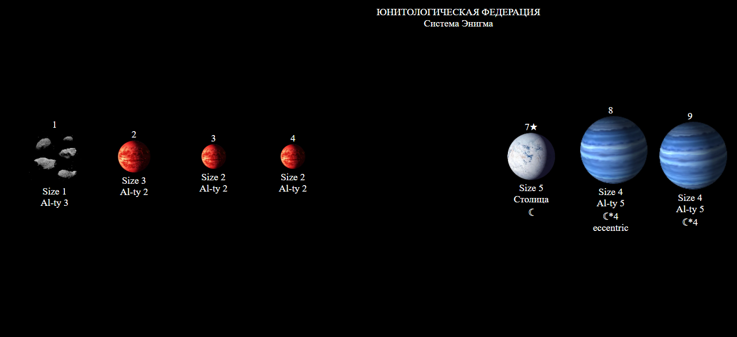"32 12" Тип планеты 1d6: (1) = 1 Расстояние до звезды 1d11: (10) = 10 Плотность звёздной системы 1d100: (84) = 84 Координаты звезды 2d40: (14 + 31) = 45 Вода 1d100: (87) = 87 Гористость планеты 1d5: (2) = 2 Ресурсы 1d100: (13) = 13 Аномалия: Тип 1d11: (9) = 9 Масштаб 1d100: (99) = 99