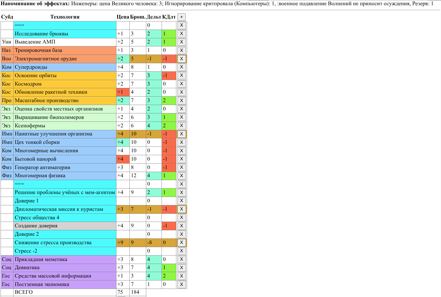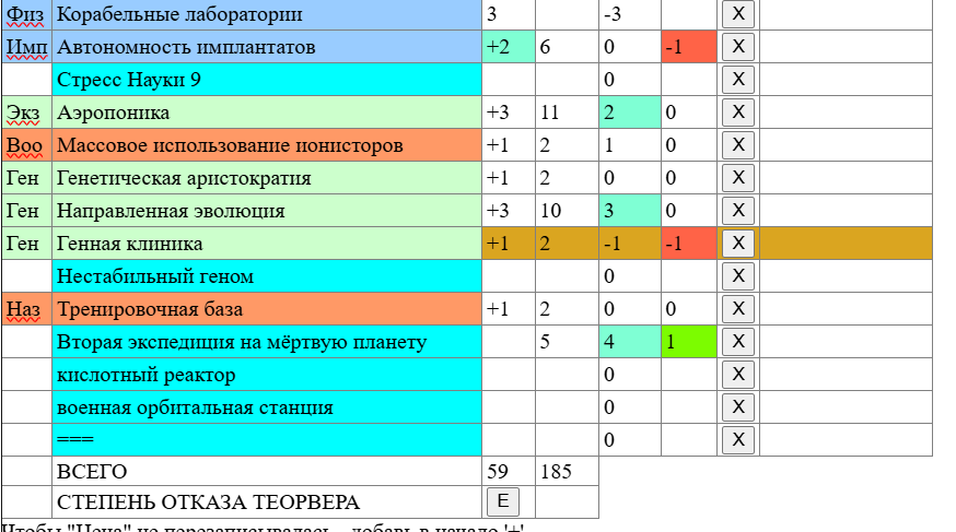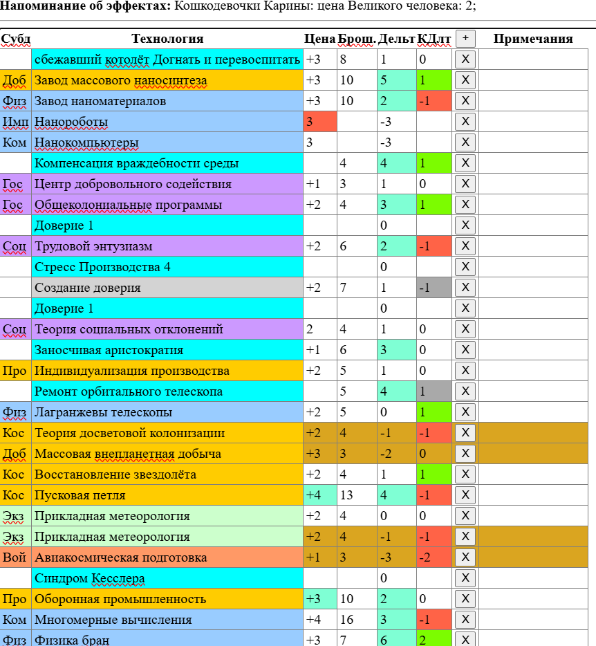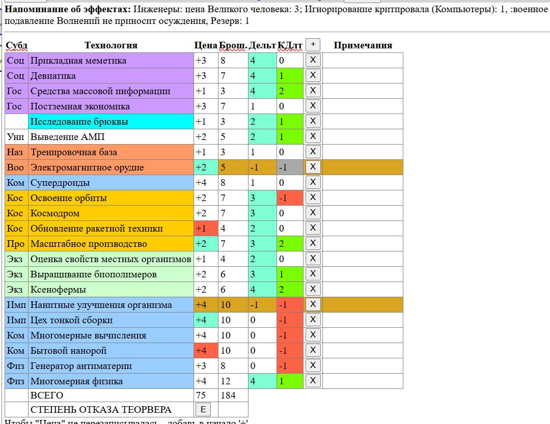 И еще у меня есть нехорошая мысль - из-за большого количества проектов и, соответственно, большого количества критов объединять криты и "лишние" успехи по под-древам науки, напр. Имплантам, Компьютерам и так далее, а если много - то и прям по древу, например, вся Социология. Я и раньше так делал, но теперь пусть будет официально. А то не напридумываешься, и так уже появился мем с "опять стрессом", который я при критпровалах леплю.