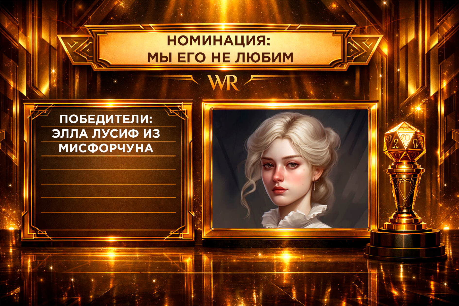 НОМИНАЦИЯ: ОТКРЫТИЕ ГОДА Неожиданная находка года - новая система, кампания или идея, от которой никто ничего не ждал, а зря. Игра, которая приятно (или не очень) удивила и оставила свой след. ПОБЕДИТЕЛЬ: ВЕЙМАР, МИСФОРЧЕН Комментарий ведущего: аналогично, голоса распределились поровну между двумя играми. Будем считать - что Веймар - действительно открывший полу-жанр игр тайл, а Мисфорчен - качественная и хорошая игра, аж настолько, что стала открытием для WR. Думайте.