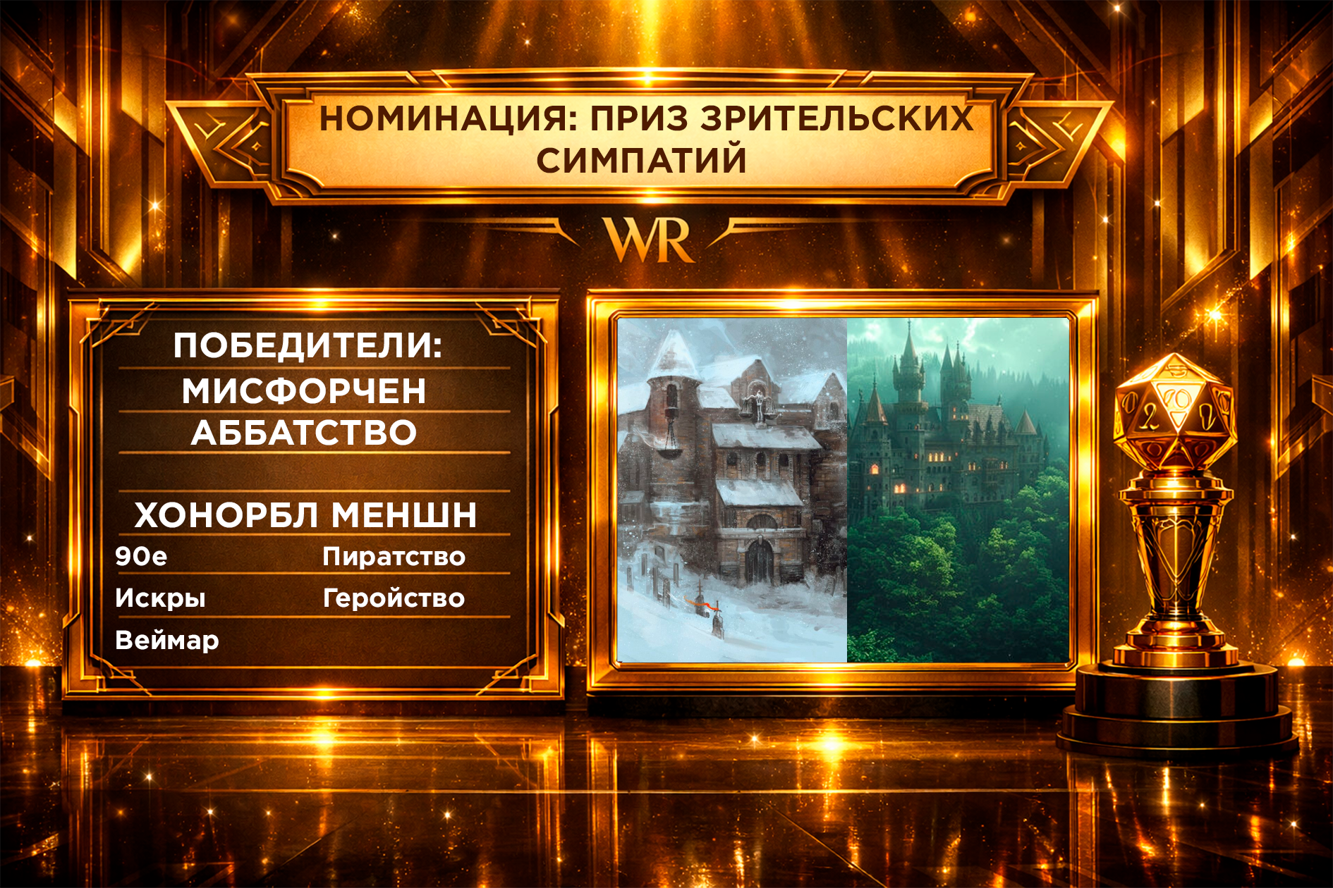 НОМИНАЦИЯ: ПРИЗ ЗРИТЕЛЬСКИХ СИМПАТИЙ Не обязательно лучшая - но любимая. Та, за которую голосуют сердцем ПОБЕДИТЕЛЬ: МИСФОРЧЕН, АББАТСТВО Комментарий ведущего: в одном из вариантов мультивселенной существует кроссовер между аббатством и академией трудных девочек-волшебниц....