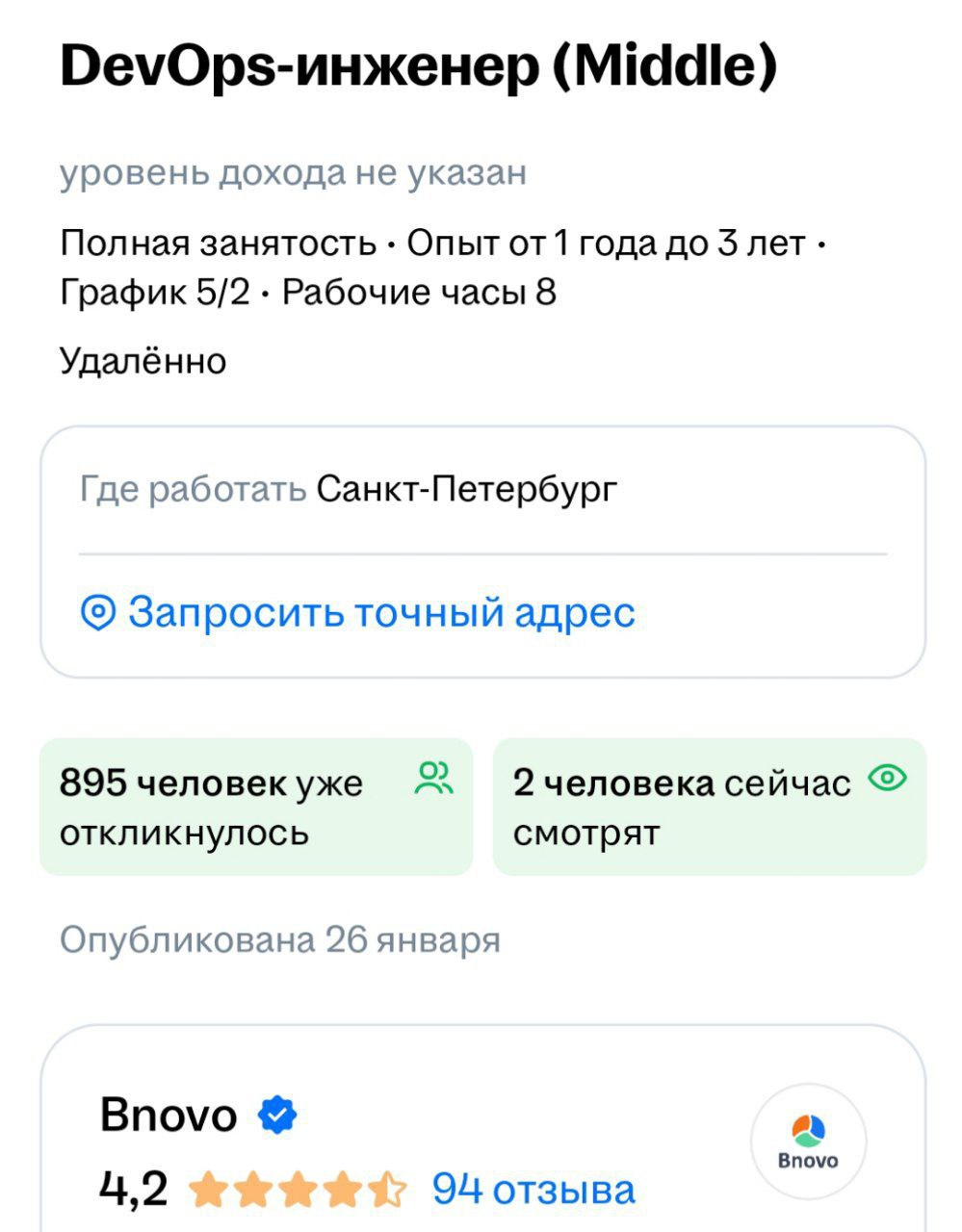а реально сисьадмином на удаленку устроиться, если в техподе работал только? 1я линия (делаешь все подряд, но прав в системе мало, максимум учетку завести, комп перенести в OU туда сюда) чет вакансии смотришь - везде пиздец требований с гору, но даже туда по 500+ откликов Может надо какой-то парсер навайбкодить, который будет сайты гуглить и выцеплять оттуда напрямую вакансии и телефоны HRа... хз как еще щас искать вакансии