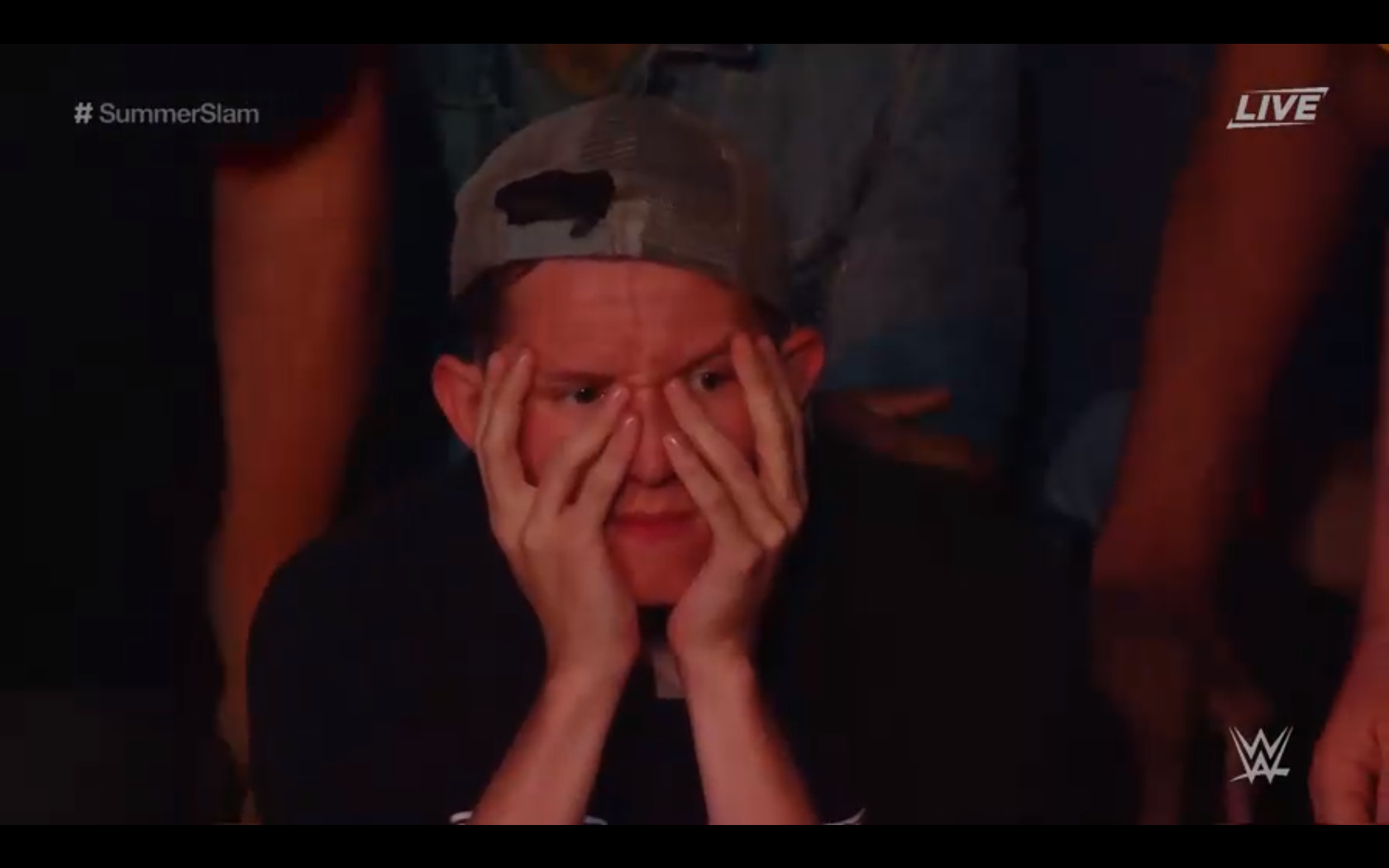 Этот чувак так разочарован. Это когда Триш Стратус проиграла Шарлоте. Неужели так может быть сильно не похуй на женские матчи? Кстати Триш Стратус намного жирней была в игре смекдаун2 на сони плейстейшен, и сиськи больше у неё там были.