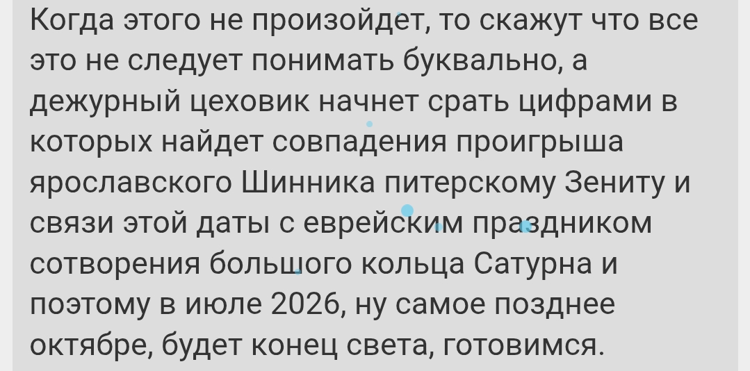 Дараганыч самоотчёт опубликовал по всем своим прогнозам на год, что сбылось, что нет. Что с ебалом, перекрыватели? Ничего же не сбывается.