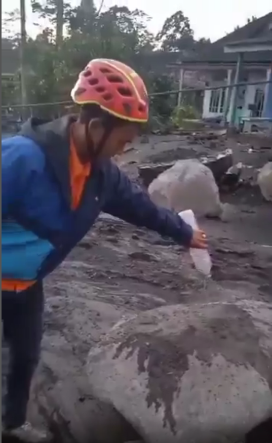 Раскалённые валуны, сошедшие с п рокластическим потопом в деревни у подножья, после извержения вулкана Семеру, Индонезия. 19.11.2025.