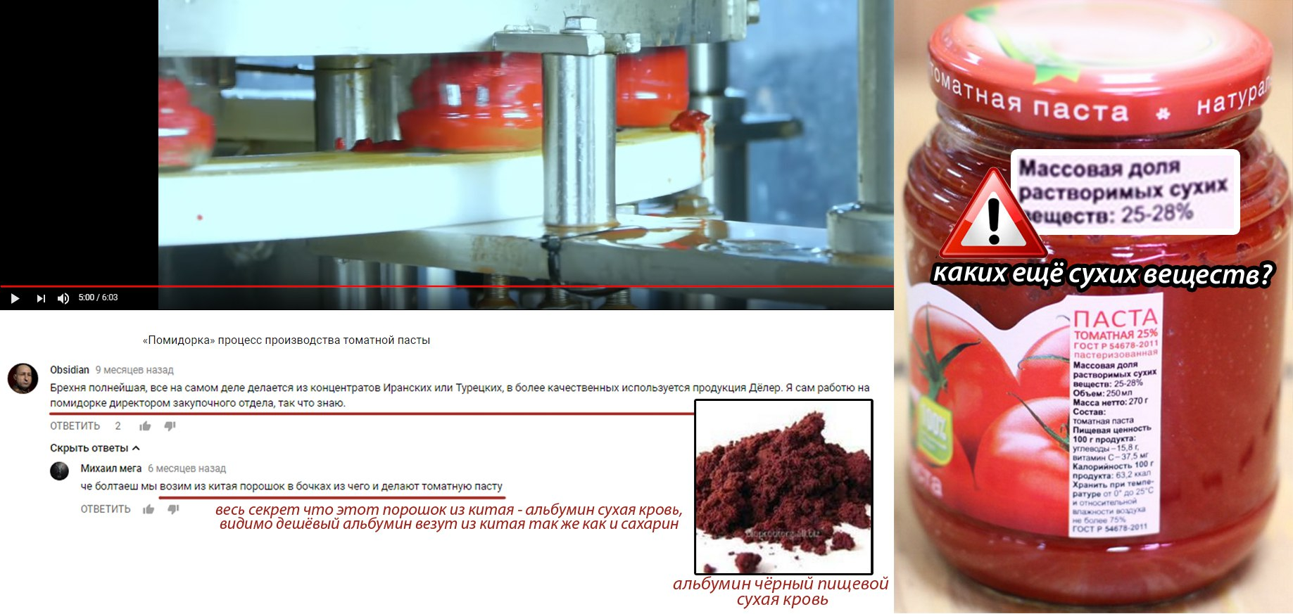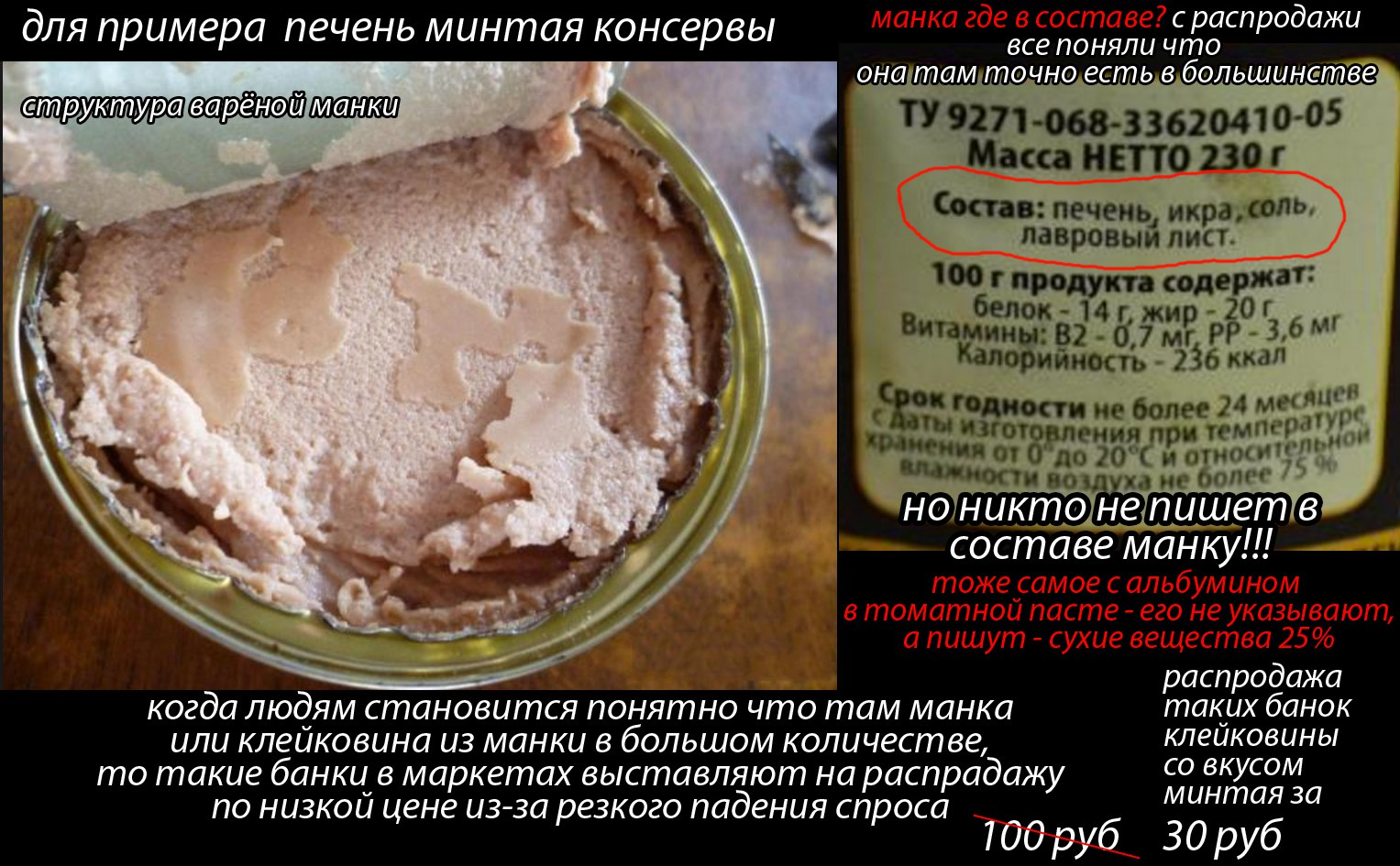 Томатная паста - альбумин, а мука - свиная плазма. ОП, спасибо за ржаку. Вообще про пальмовую молочку давно не новость. Урожаи картохи катятся вниз из-за отсутствия севооборота и непрокаченных методов обнаружения болезней на ранних стадиях. Знакомые 5 лет изучают обнаружение болезней методом спектрографии и получают МРОТ, при должном финансировании у них не исследования бы сейчас были, а процесс сертификации готового прибора для выявления болезней СХ культур на ранних стадиях. А завозить будут сейчас картоху из Китая с тяжёлыми металлами, так как они на призаводских полях её ебашат, чтобы тупо снизить затраты на логистику. Остается только что-то своё как в старые добрые выращивать...