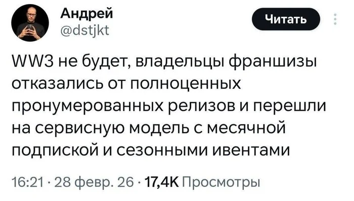 > В этом году настанет БП > Нихуя не случается > Я принёс новый прогноз на БП уже в следующем году > Нихуя не случится, а жизнь медленно, постепенно, планомерно медленно ухудшают > Я принёс новый йоба прогноз на что-то масштабное в этом году > Нихуя не случается